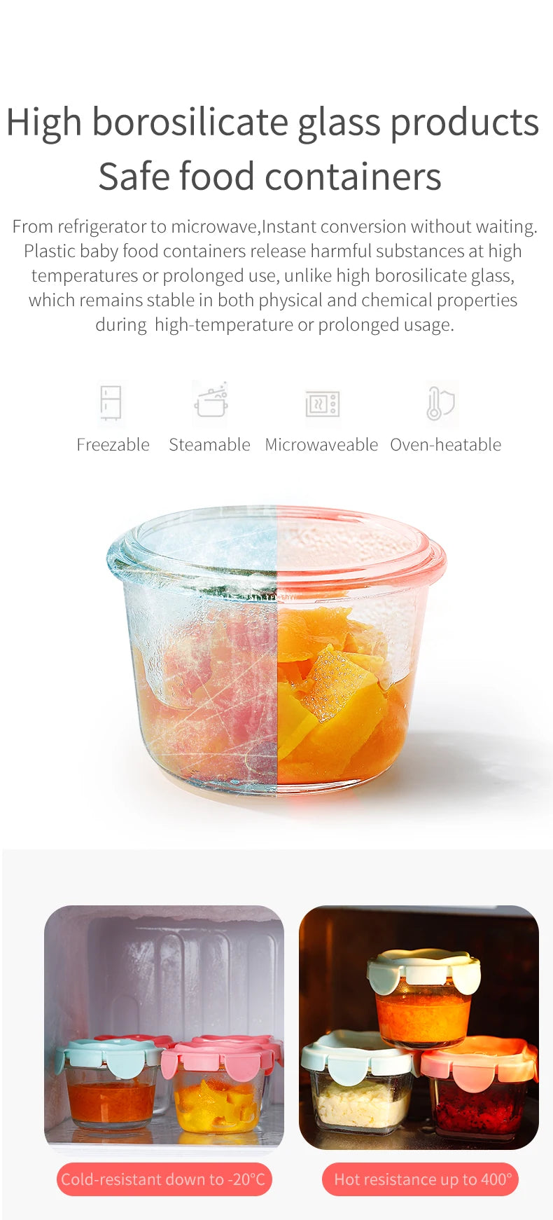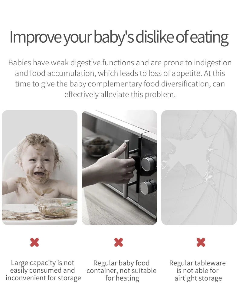 Purpose: ①Store Baby Food ②Portable Baby Food ③ Steam Cooking Utensil ④baby tableware