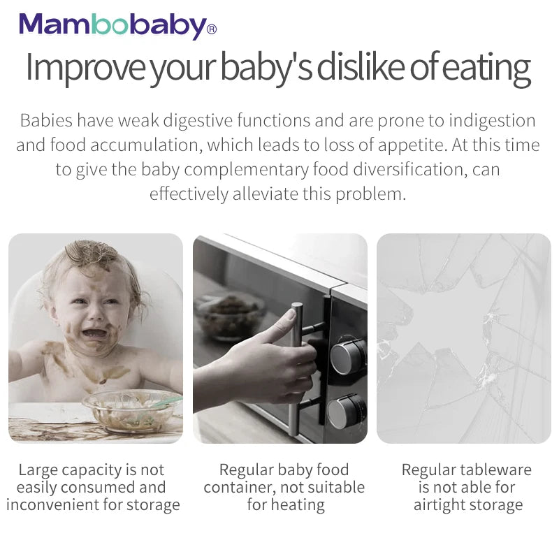 For storing and preserving your baby's complementary foods, you need a container that's both healthy and convenient. Enter Mambobaby Baby Food Box, crafted from food-grade high borosilicate glass with a mini design. Glass, known as the perfect food container, won't leach harmful substances like plastics do, ensuring your baby's food safety, even in high temperatures or with prolonged use. The press-seal lid is not only easy to use but also effectively preserves the baby food. Perfect for on-the-go with powdered milk or cleaned fruits. The external scale helps mothers control food intake effectively. In the baby's complementary food stage, multiple sealed, healthy, and compact containers are essential for ensuring your baby gets the right nutrition.
