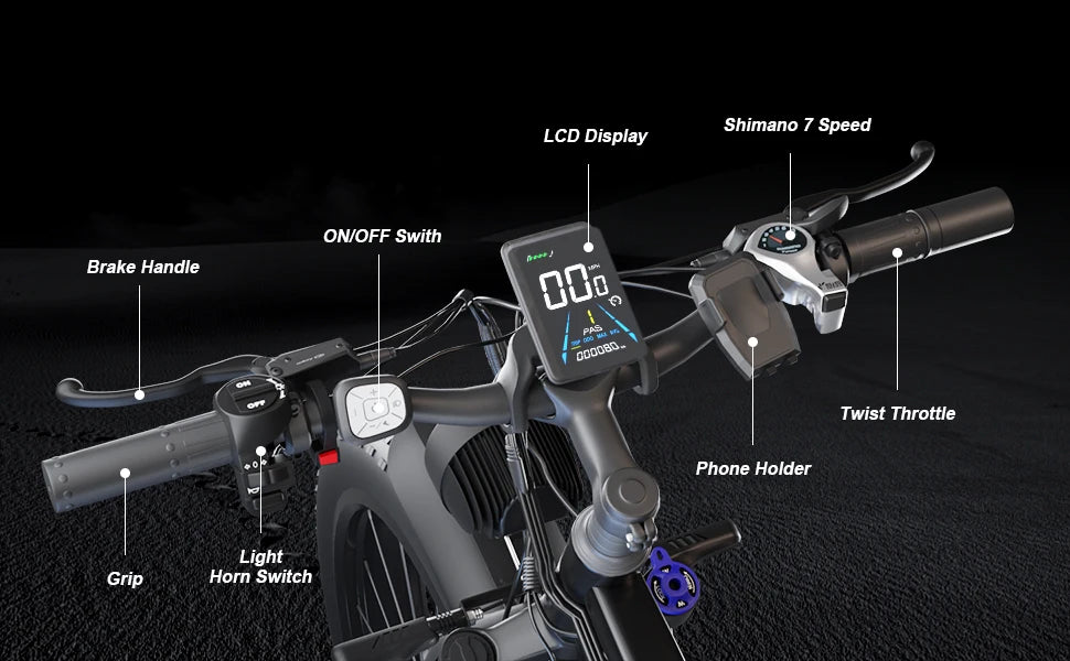 Power and Versatility in Every Ride****All-Terrain Conqueror:** The **48V 2000W E-Bike** is a force to be reckoned with, designed to master snow, beaches, and rough terrains with its robust power.**Full Suspension Design:** Enjoy a smooth ride with the bike's full suspension, absorbing impacts and providing stability for a comfortable off-road adventure or daily commute.**26" Fat Tires:** These tires offer exceptional traction, making the perfect for diverse surfaces, from sandy beaches to snowy landscapes.**Hidden Dual Battery System:** The innovative hidden dual battery setup extends your riding range, ensuring you can explore further without frequent stops for recharging.**Versatile and Stylish:** Whether you're seeking adventure or a stylish commute, blend of power and elegance makes it the perfect companion.**Ready for Your Next Journey:** Embrace the freedom of the open road with the It's not just an e-bike; it's your ticket to unforgettable experiences.