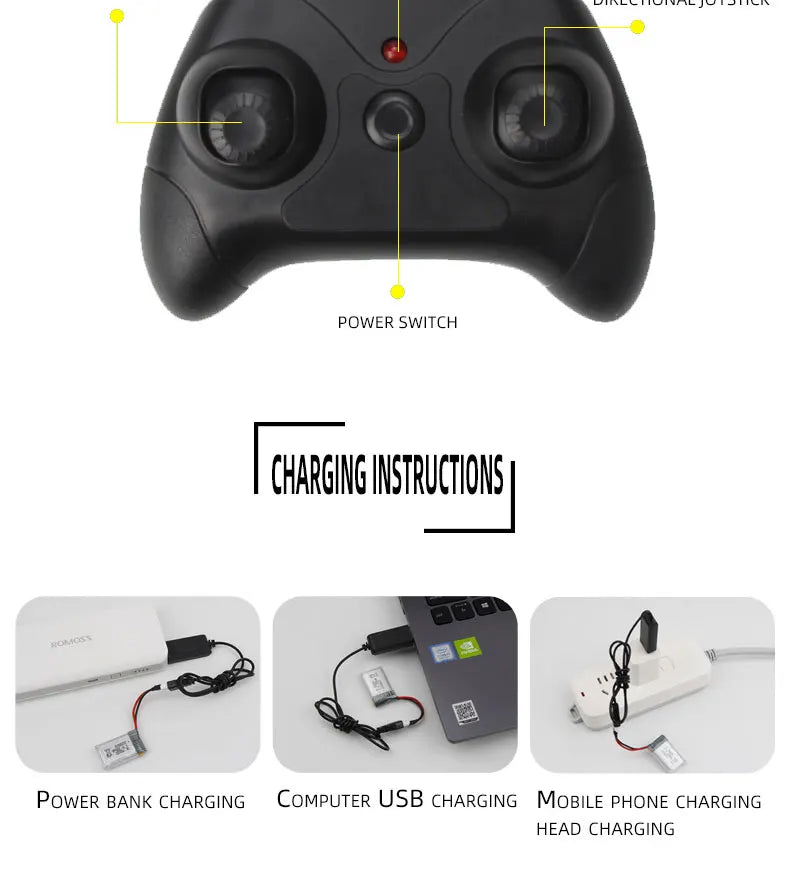 2.4GHz 2CH aircraft, including 4 directional flying, ascending, descending, turning left, and turning right.
