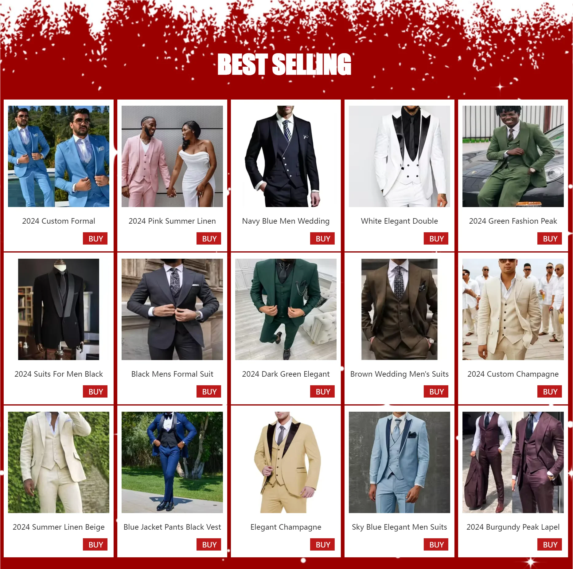 Slim Fit Men Suits (Jacket+Vest+Pants)